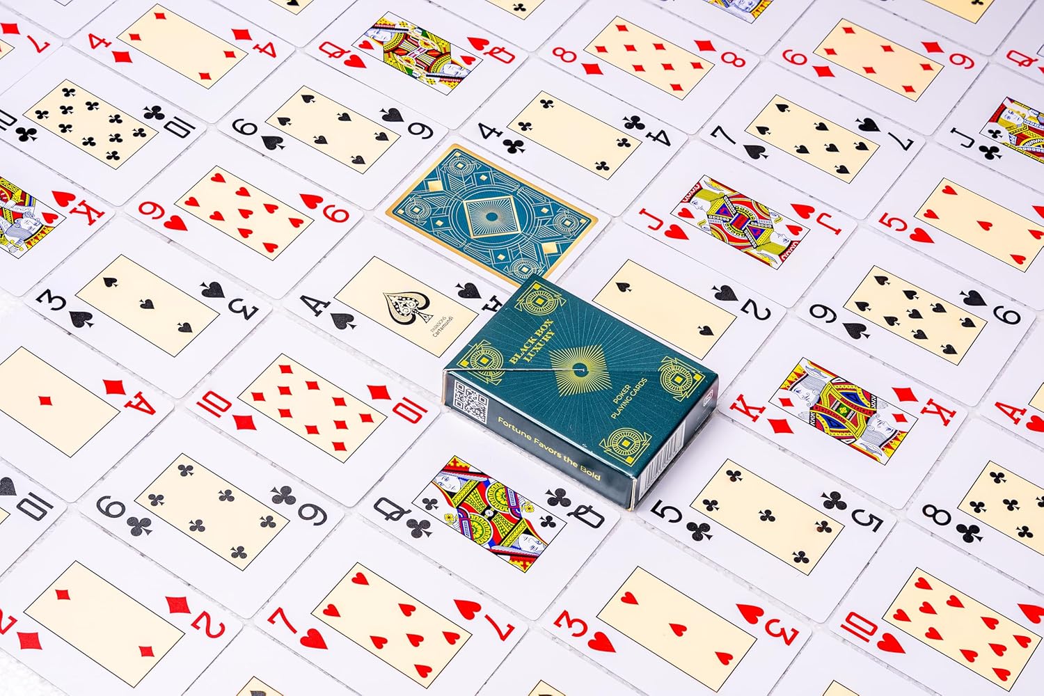 - Design: Ultra Lux playing cards with beautiful teal colour and gold foiling. Intricate geometrical design elevated premium quality. Jumbo Index.