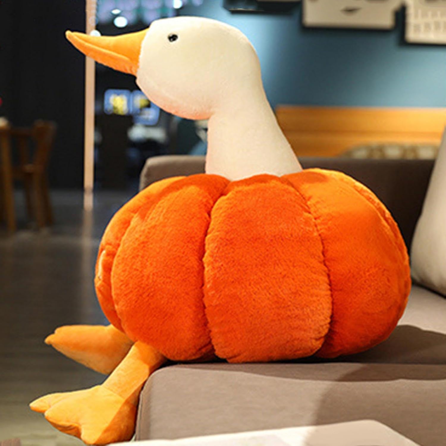 - 【Design】: Duck Stuffed Animal, Exquisite workmanship, simple style. Cartoon Pumpkin duck shaped plush doll, which is cute and beautiful.