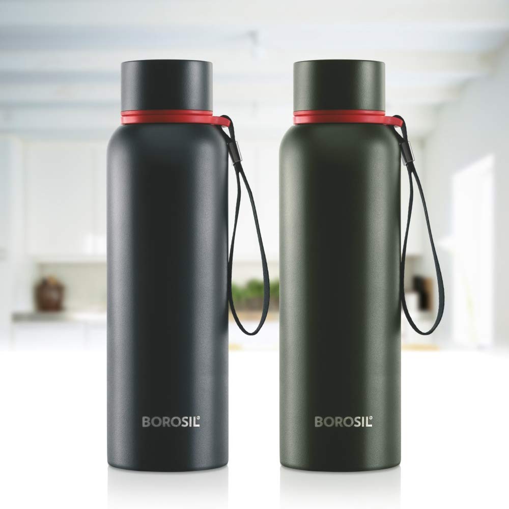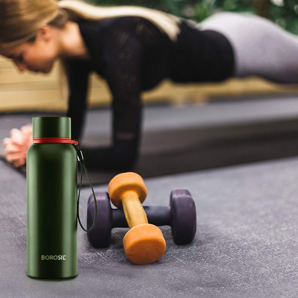 Borosil Hydra Trek 850 ml Stainless Steel Water Bottle | Double Wall Vacuum Insulated Flask, Green | 20 Hours Hot & 24 Hours Cold | Ideal for Personal & Corporate Gifting | 1 Year Warranty