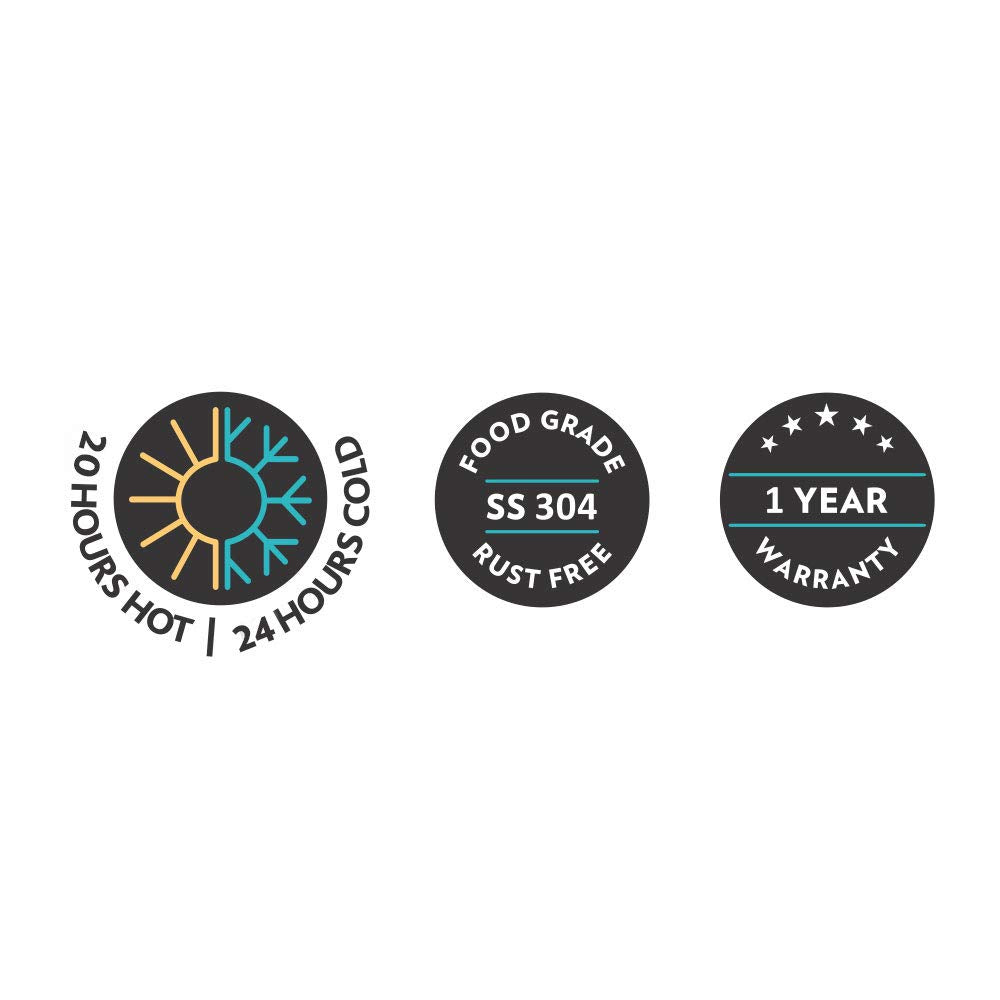 - 20 HOURS HOT, 24 HOURS COLD- Keeps your drink cold for 24 hours or hot for 20 hours straight. Sip healthy with our BPA-free water bottles that are made with non-toxic materials. With our reusable water bottle, staying hydrated all day long just got easier. For the coldest drink, simply add ice cubes to your insulated bottle.