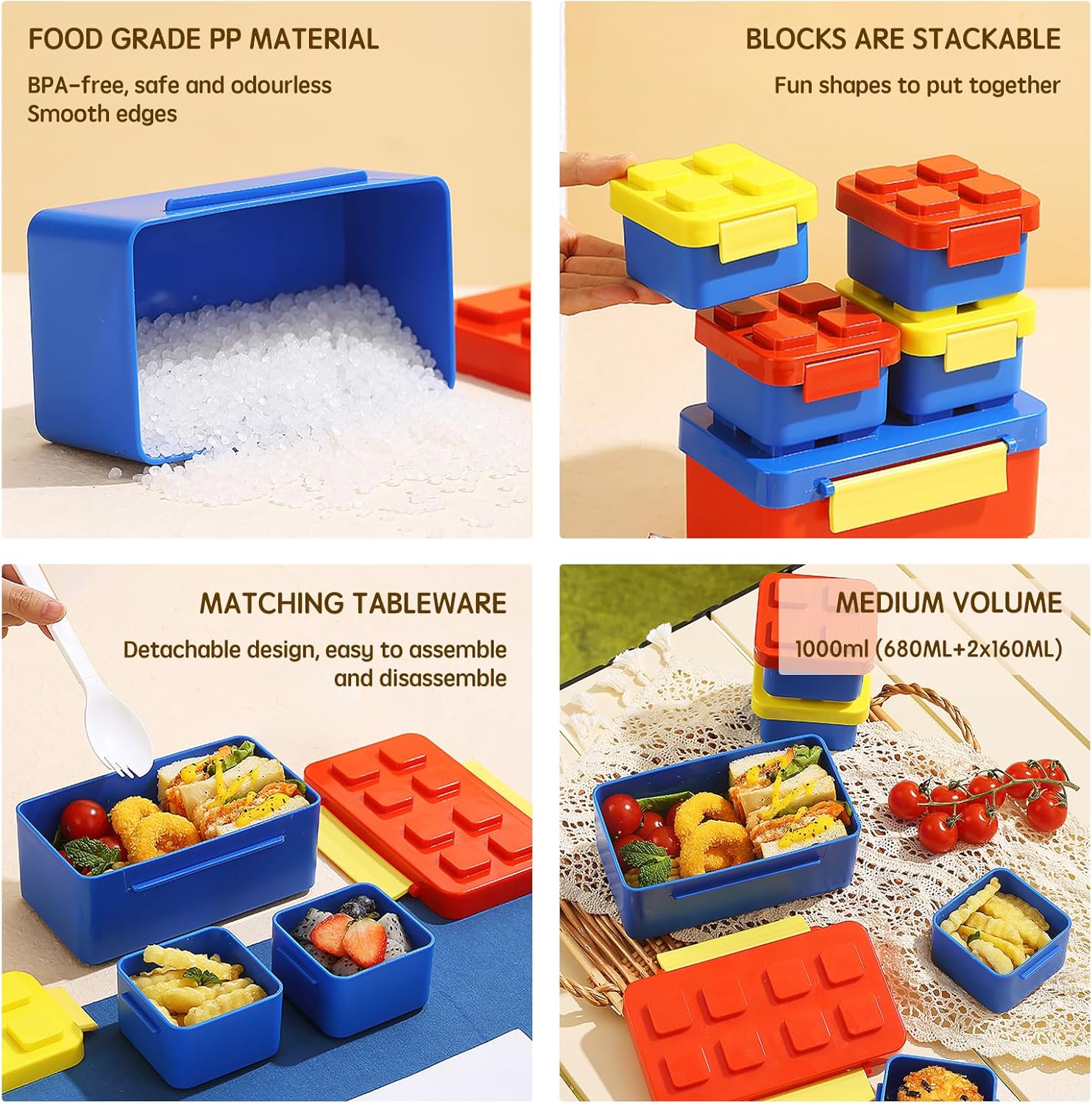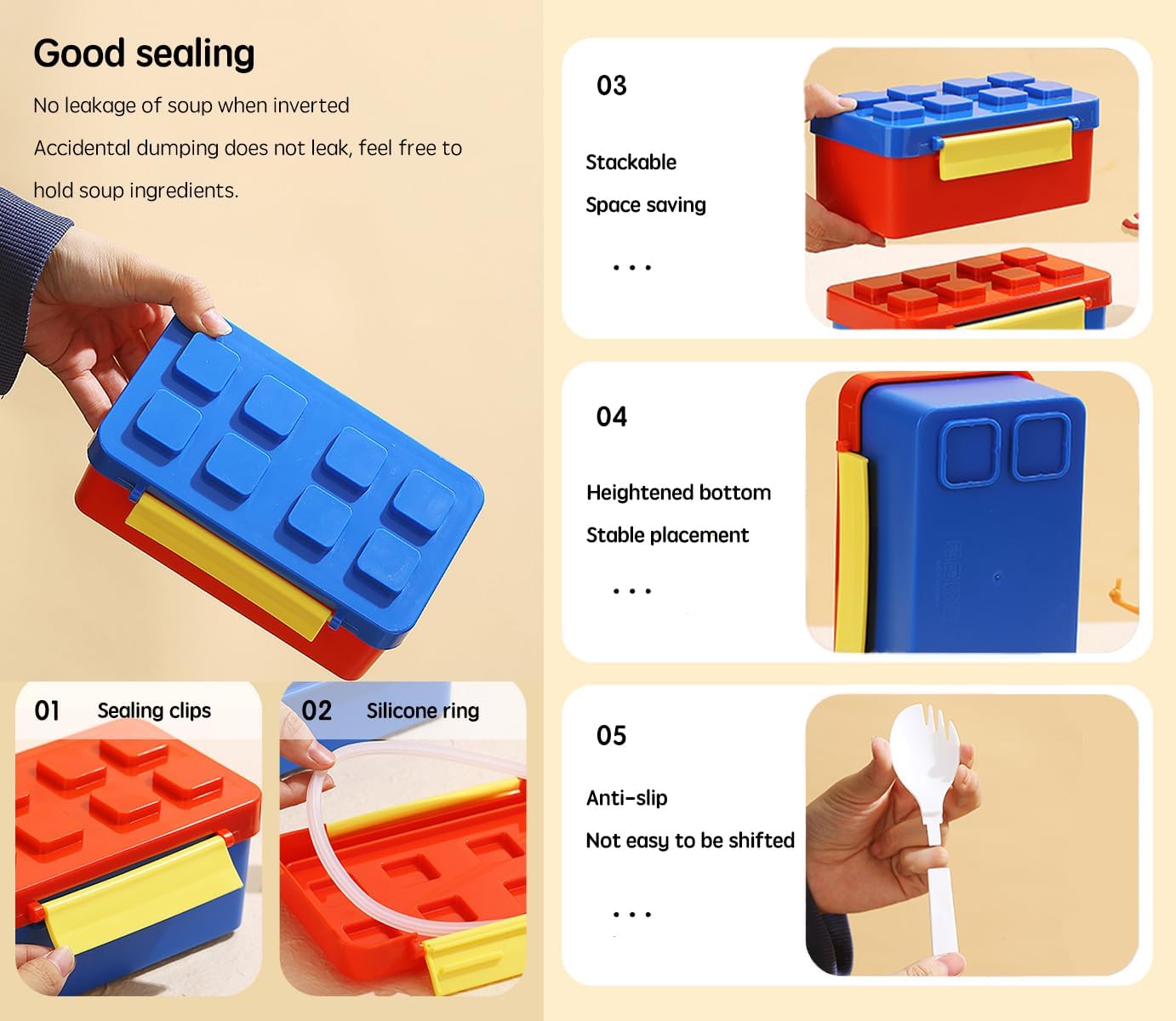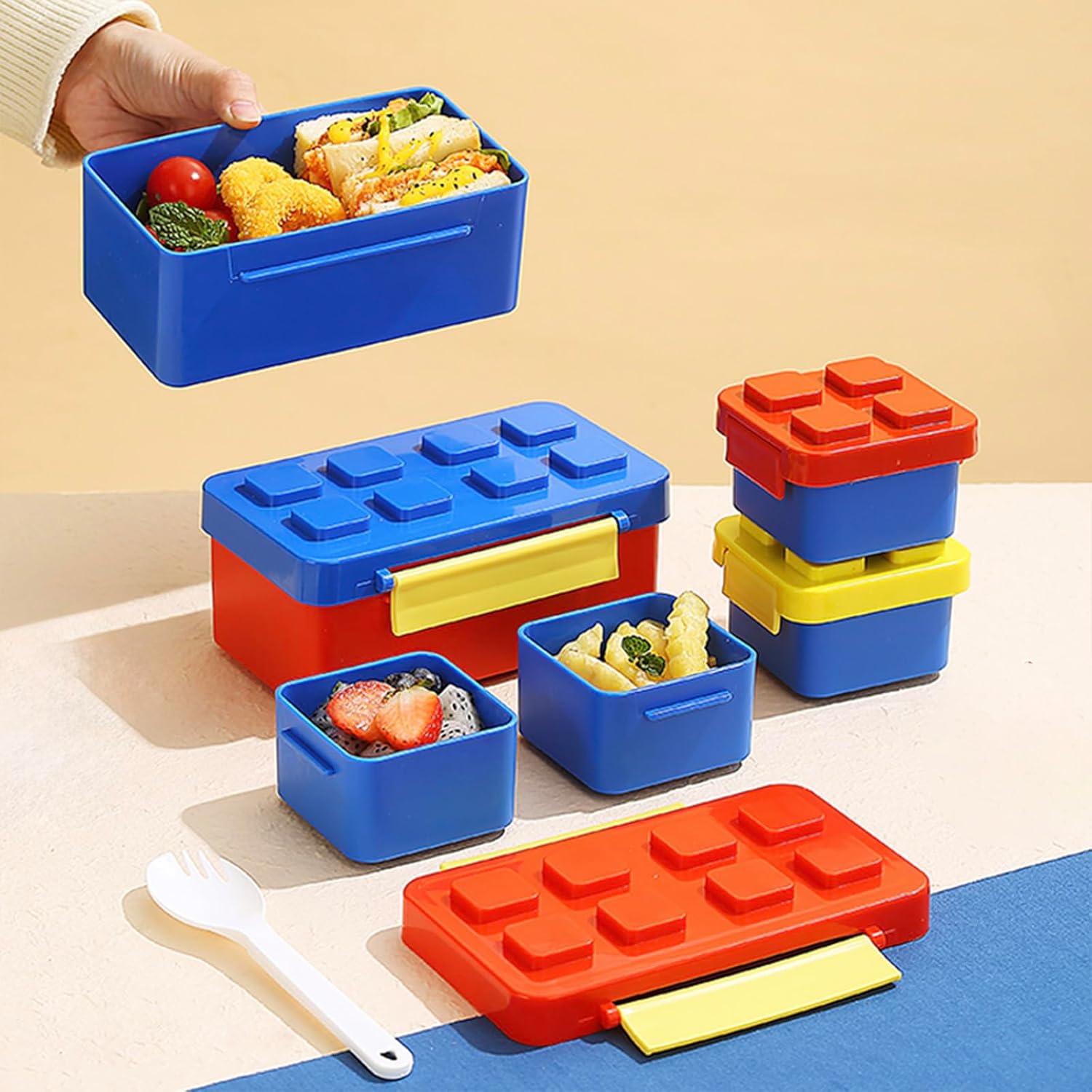 BRYN 1000 ml Lunch Box with Compartments, Bento Box, Microwave-Safe, Sealed Lunch Box with Cutlery for Picnic, Camping, Fitness, School, Offices (Blue)