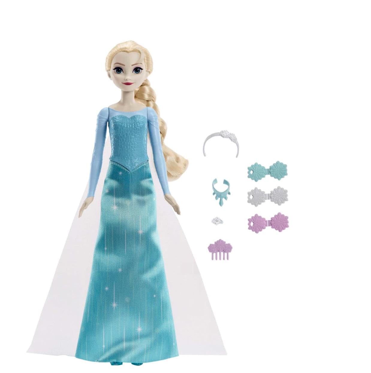 - Includes 9 accessories for getting the Elsa doll ready, such as hair clips, a tiara, shoes and necklace.