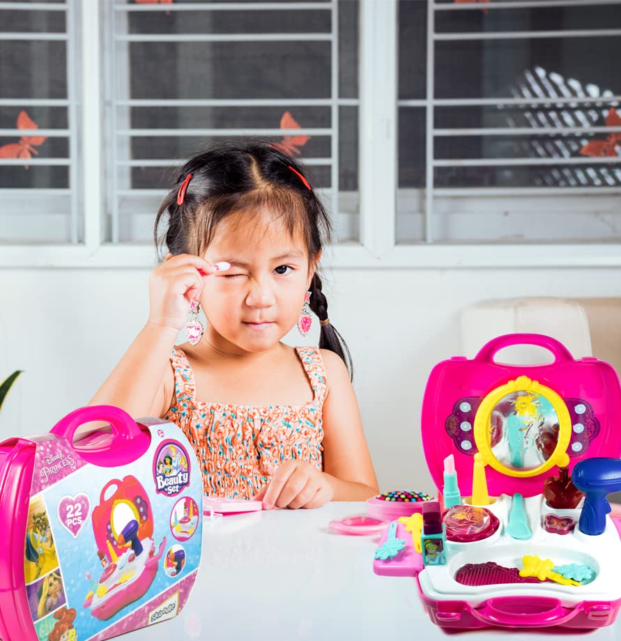 - Cute Little Portable Carry Case: Disney Princess Themed Portable Carry Case can be easily carried along as it is super lightweight and Portable. Your Girl child can carry this Disney Princess themed beauty kit to her friends place and she along with her friends together can dive into imaginative world of Disney Princess.