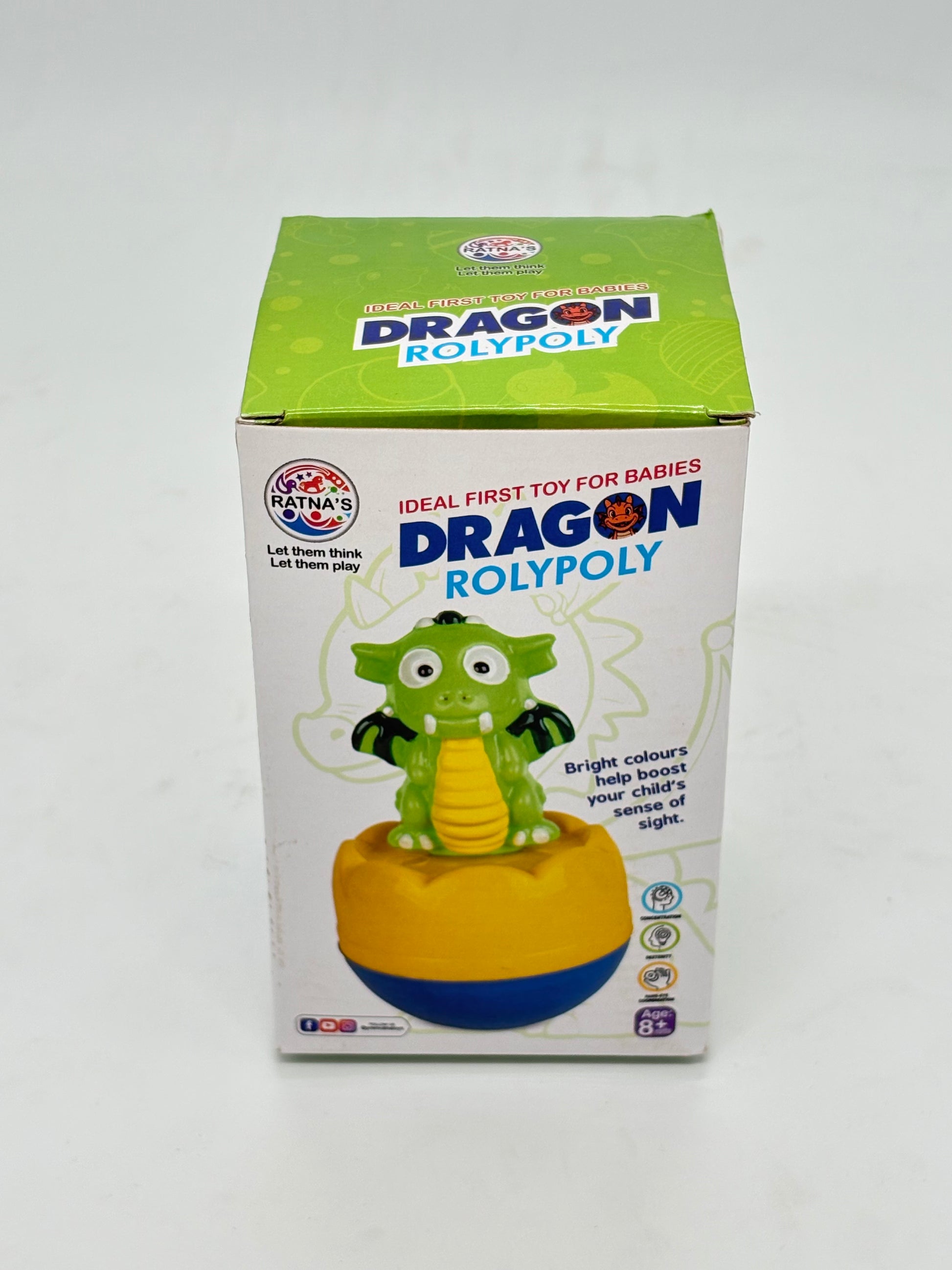 Introducing the delightful Dragon Roly Poly toy from Ratna's, a captivating first plaything designed to engage and entertain babies. This charming dragon figurine boasts vibrant colours that stimulate a young child's senses and imagination. Crafted with utmost care, the toy features a whimsical dragon perched atop a roly-poly base, allowing it to wobble and roll, much to the delight of little ones. This engaging plaything encourages hand-eye coordination, motor skills, and cognitive development through interactive play. Compact and portable, the Dragon Roly Poly is an ideal companion for playtime at home or on-the-go. Embrace the joy of early learning and nurture your child's growth with this delightful toy from Ratna's.