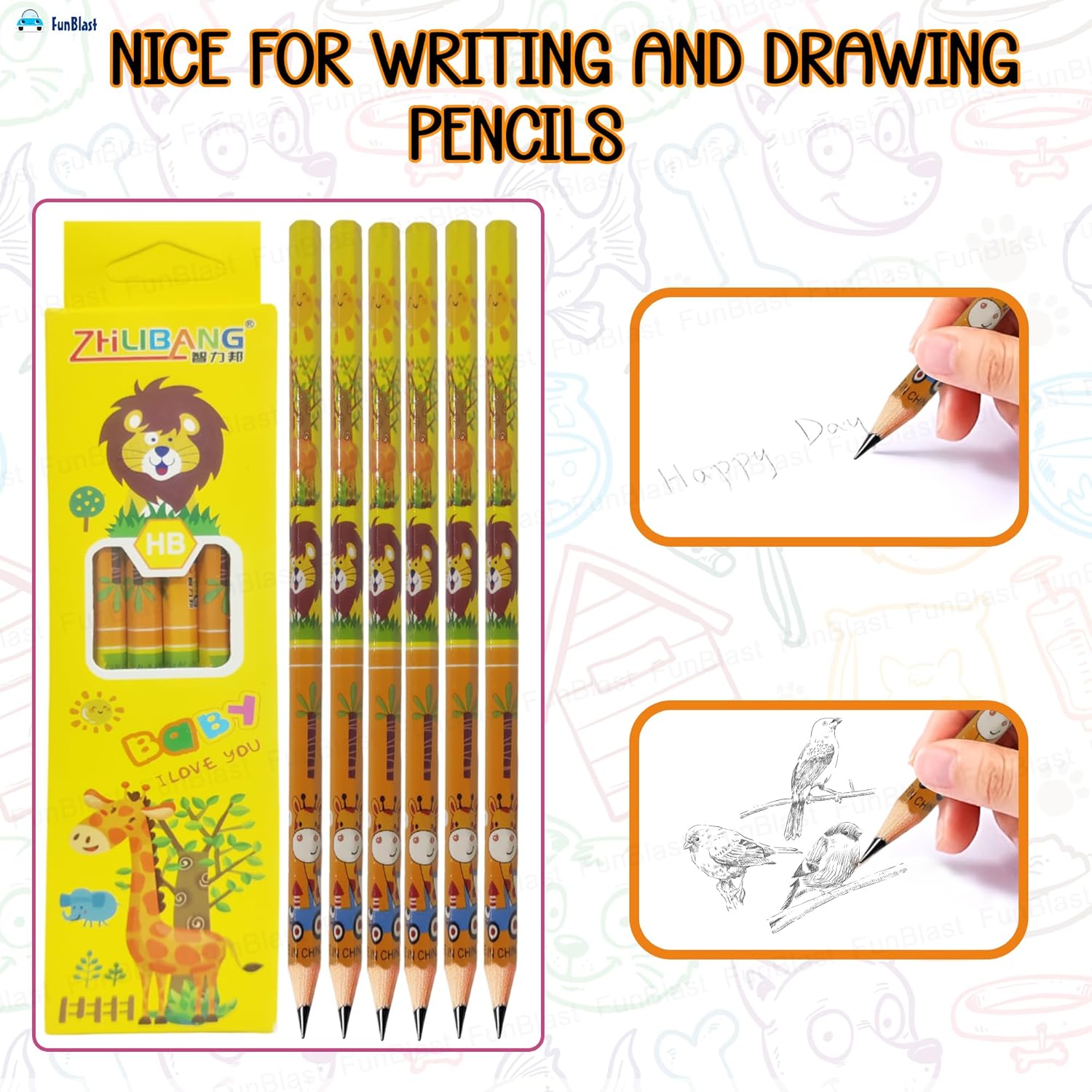 - In The Box – FunBlast cartoon themed stationery set comes with 6 Pencils, 18 Colour Pencils, 1 Sharpener, 1 Eraser, 1 Drawing Book and 1 Scissor