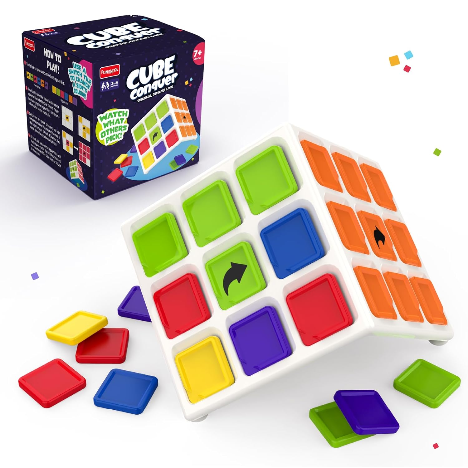Funskool Cube Conquer, Strategic & Mind Challenging Cube Game for Kids and Adults, Learning & Development Toy for 2-6 Players, Ages 7+, Easy to Learn, Multicolour, Game Nights, Gift Set for Kids