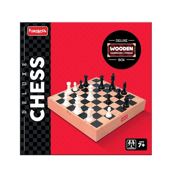 Funskool Games, Deluxe Chess, Wooden Set, War & Strategy, Family Games, Strategy Board Games, Toys for Kids, Wooden Board with Storage Box, Adults & Family, 2 Players, Ages 7 and Above, Multicolour