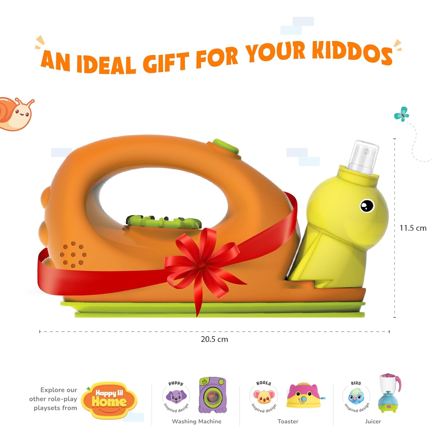 - Press on fun and creativity with The Snail-shaped pretend play iron. Ironing fun meets imagination