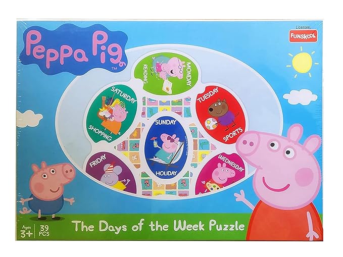 Learn The Days of the Week with this Peppa Puzzle (39 Pcs). Connect all the pieces of the puzzle to learn the various days of the week and go on a journey with Peppa & her friends to understand all about the different activities that they undertake daily