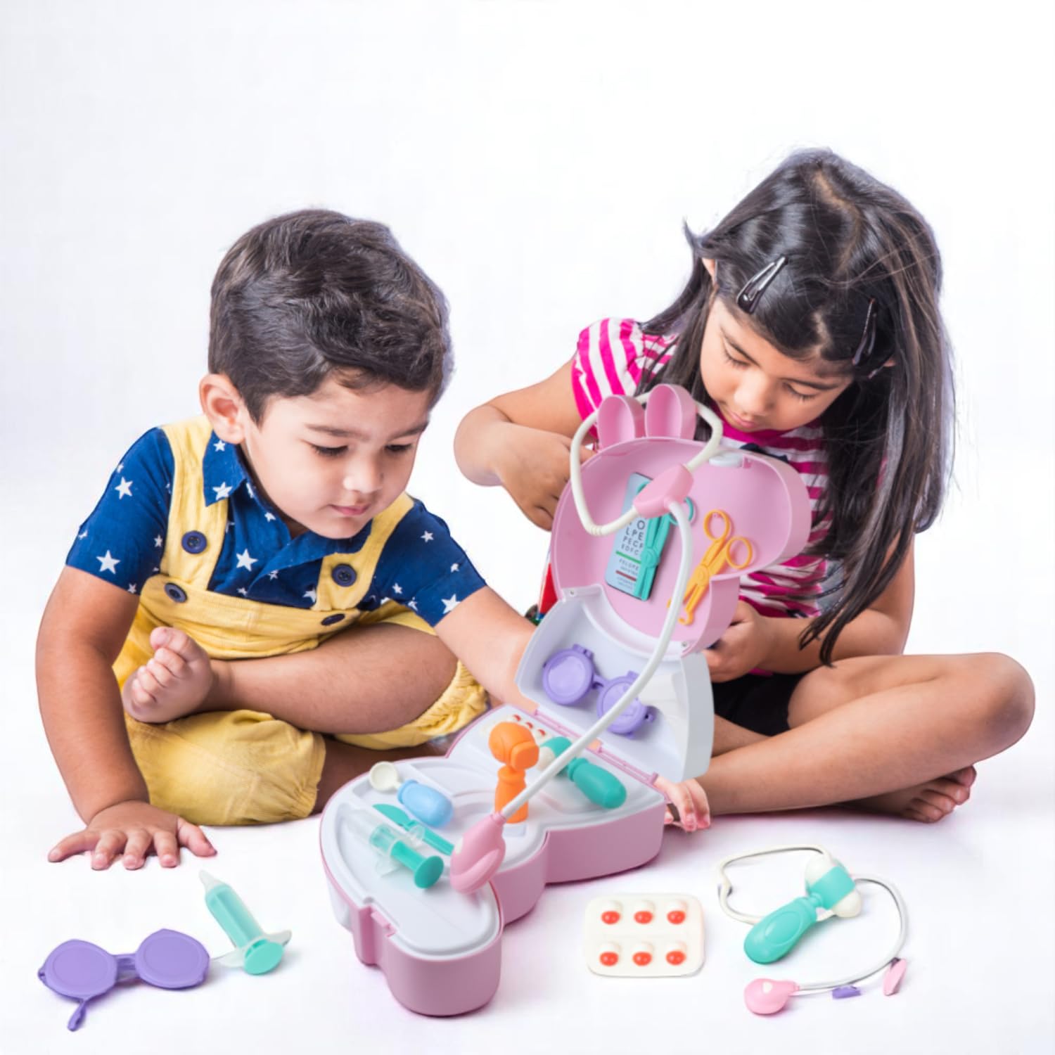 - š„ Complete 18-Piece Medical Kit ā Includes working stethoscope, thermometer, syringe, bandages & more