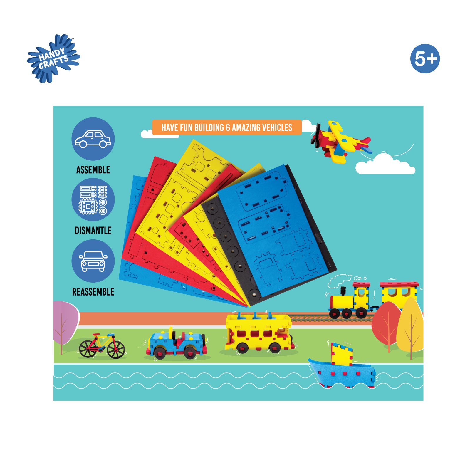 Handycrafts Funskool Foam Vehicles, Unbox The Adventure, DIY Kit, Art and Craft Set for Kids, Learning, Fun & Engaging Activity for Childrens, Multicolour, Gift Set for Kids, Age 5+ Years