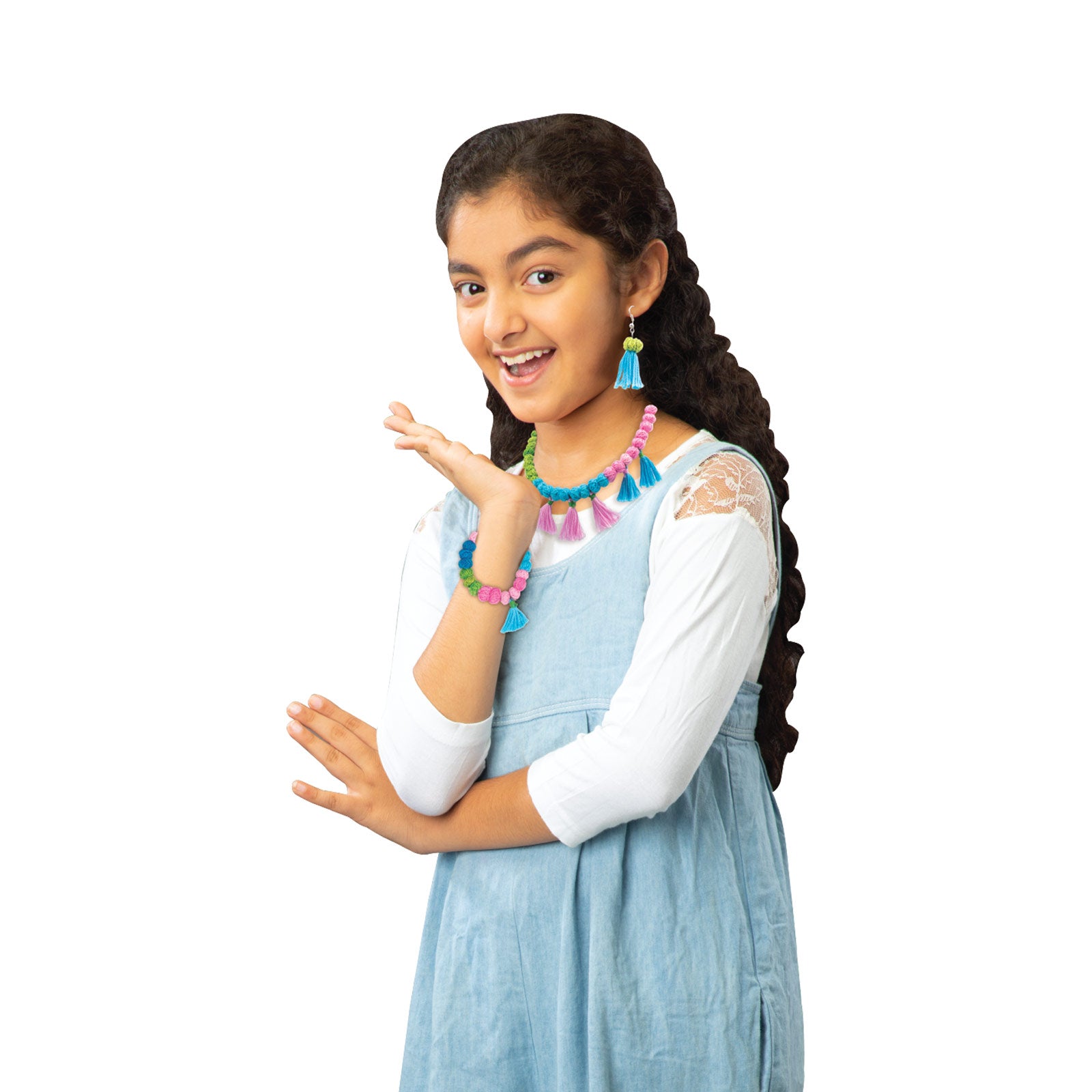 This Tassel Jewellery Kit can be used to make three colourful necklaces, bracelets and earrings. It is perfect for little girls as it can enhance their artistic abilities and creative skills. It comes with appealing decorative pieces that can encourage the kids to create instantly