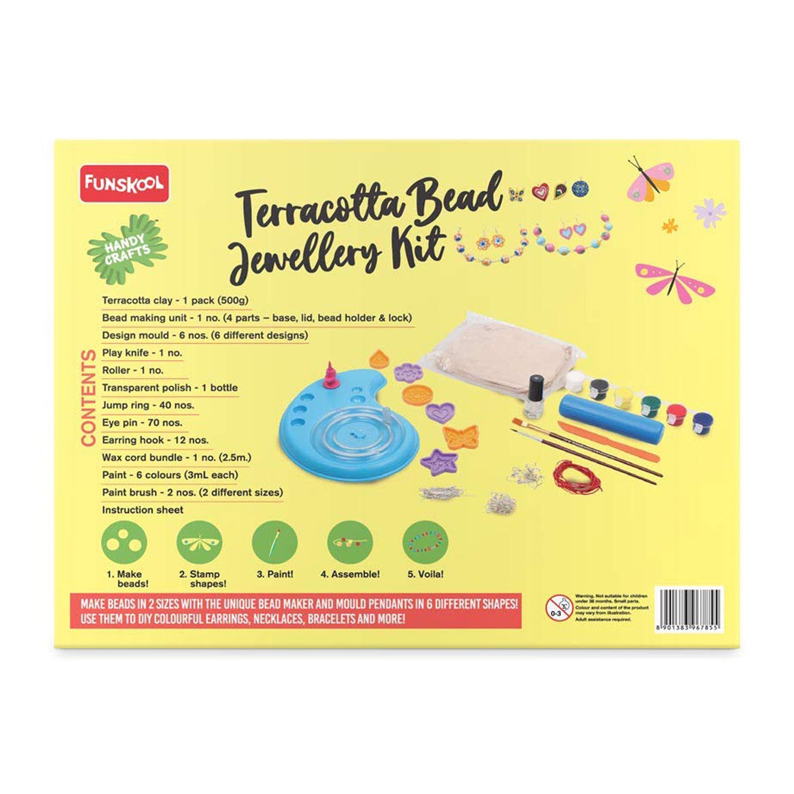 Handycrafts - Terracota Bead Jewellery, Jewellery Making Kit, for The Young accesory Designer, 6 Years +, DIY Terracota Beads