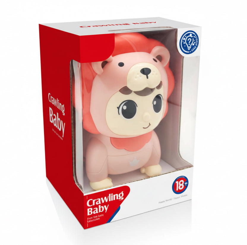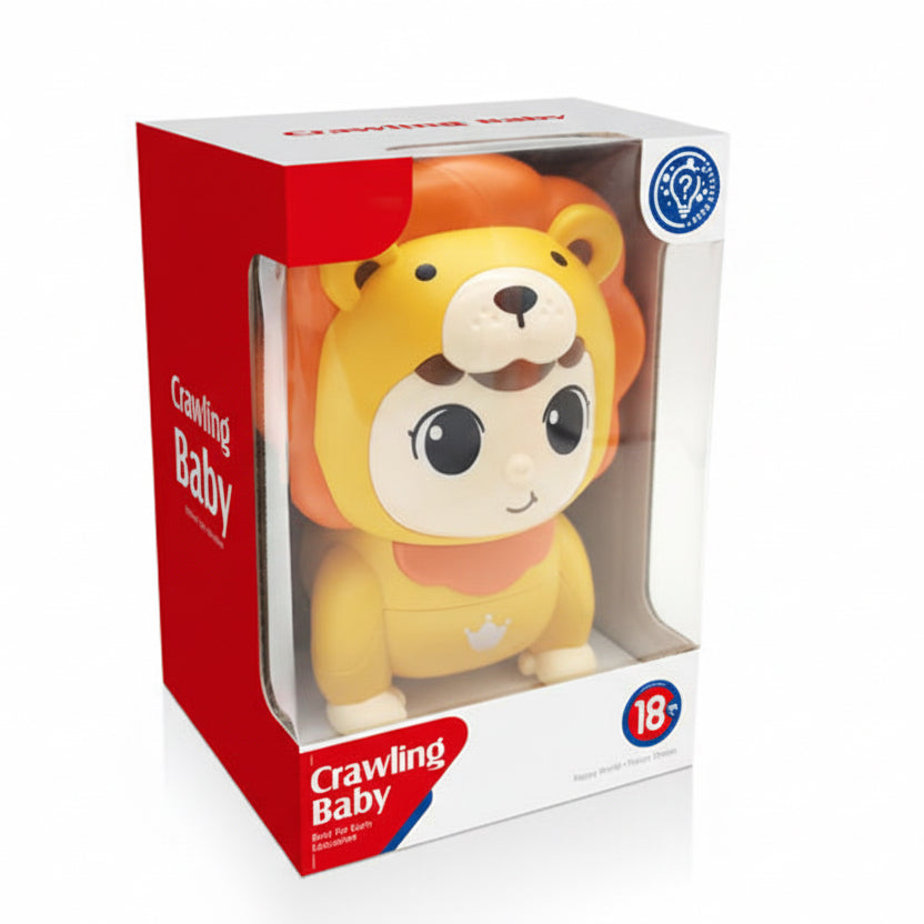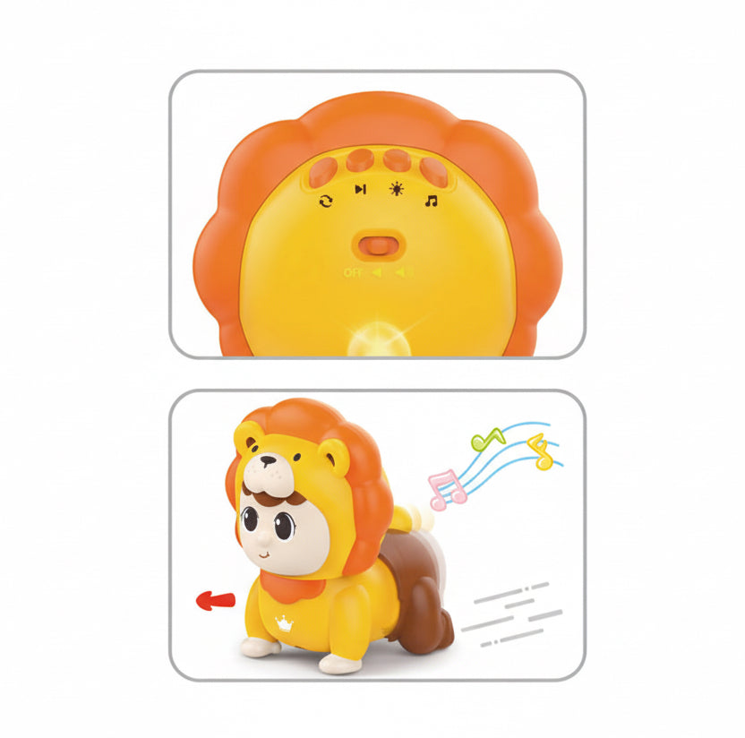 Adorable crawling baby toy in a cute lion design that moves, plays music, and lights up—encouraging babies to crawl and develop motor skills through interactive play.
