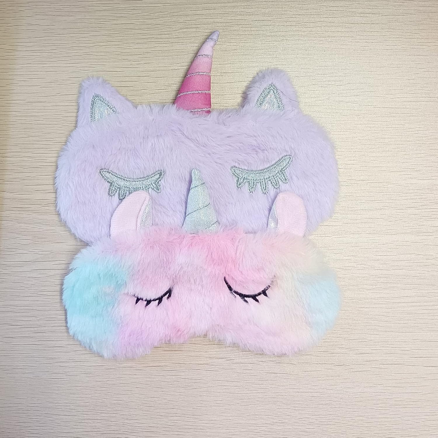 KANOA Polyester Cute Animal Sleeping Sleep Mask Soft Plush Blindfold Cute Rabbit Panda Koala Eye Cover Eyeshade For Kids Teens Girls Women (Unicorn Purple)