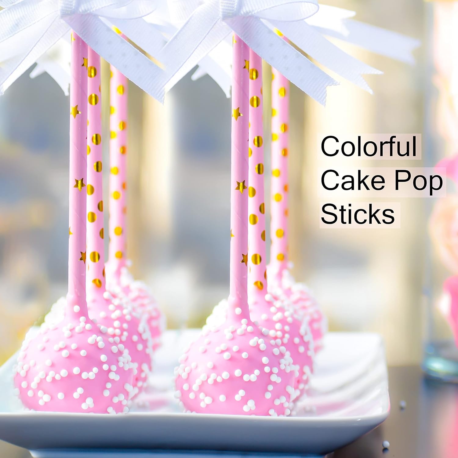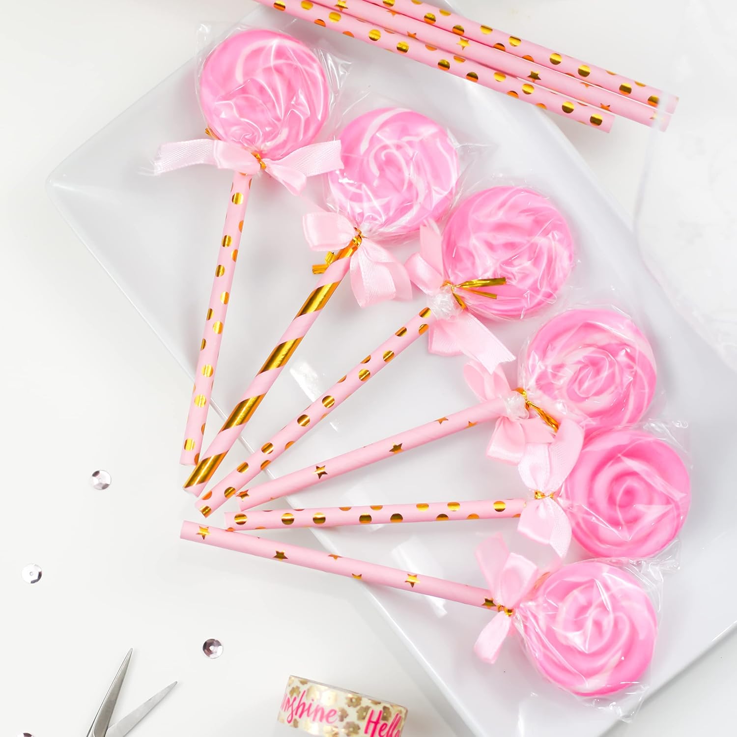 KEDON Pink Gold Paper Straws 100, Disposable Cake Pop Sticks Metallic Gold Striped Star Decorative Pink Straws for Drinking Cocktail Bachelorette Wedding Crafts Baby Bridal Shower Gender Reveal