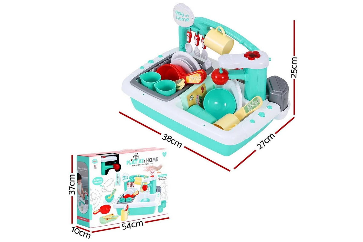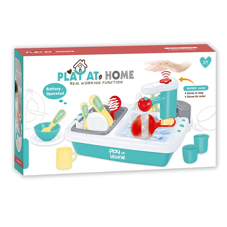 HAND SENSOR CONTROL KITCHEN SINK: This kitchen sink playset is a great way to encourage your children to clean up and wash up! You can wash all the included accessories freely with fantastic built-in features. FEATURES: A real faucet feature is included in this set - simply fill the basin with water and it will flow water through the tap by pressing the pump! A great way to monitor the water level and give your child maximum fun. CONTENTS: Everything your child needs is included in this kitchen sink set. A large water basin with sink and drying areas where your child can clean any accessories. A variety of accessories are also included - including "cuttable" toy food and even realistic kitchen appliances. Advantages: help your child build their key skills in a playful way! This kitchen set is great for developing hand-eye coordination skills and encouraging your child to socialize and communicate with friends or family.