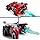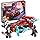 - The toy car features a red and black color combination, two stud launchers at the front and a large booster element at the back