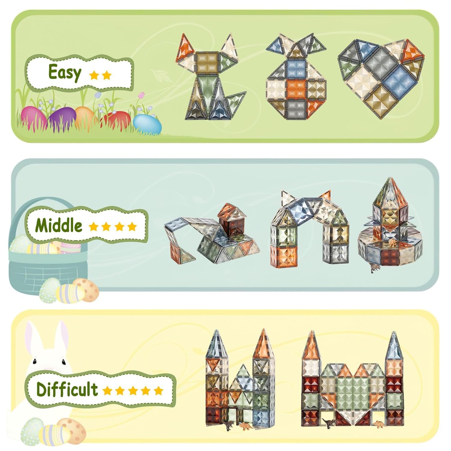 - BUILD BEYOND IMAGINATION: Unleash limitless creativity with magnetic tiles that click and connect effortlessly. Build anything from towering castles to sleek spaceships, all while developing spatial reasoning and engineering skills.