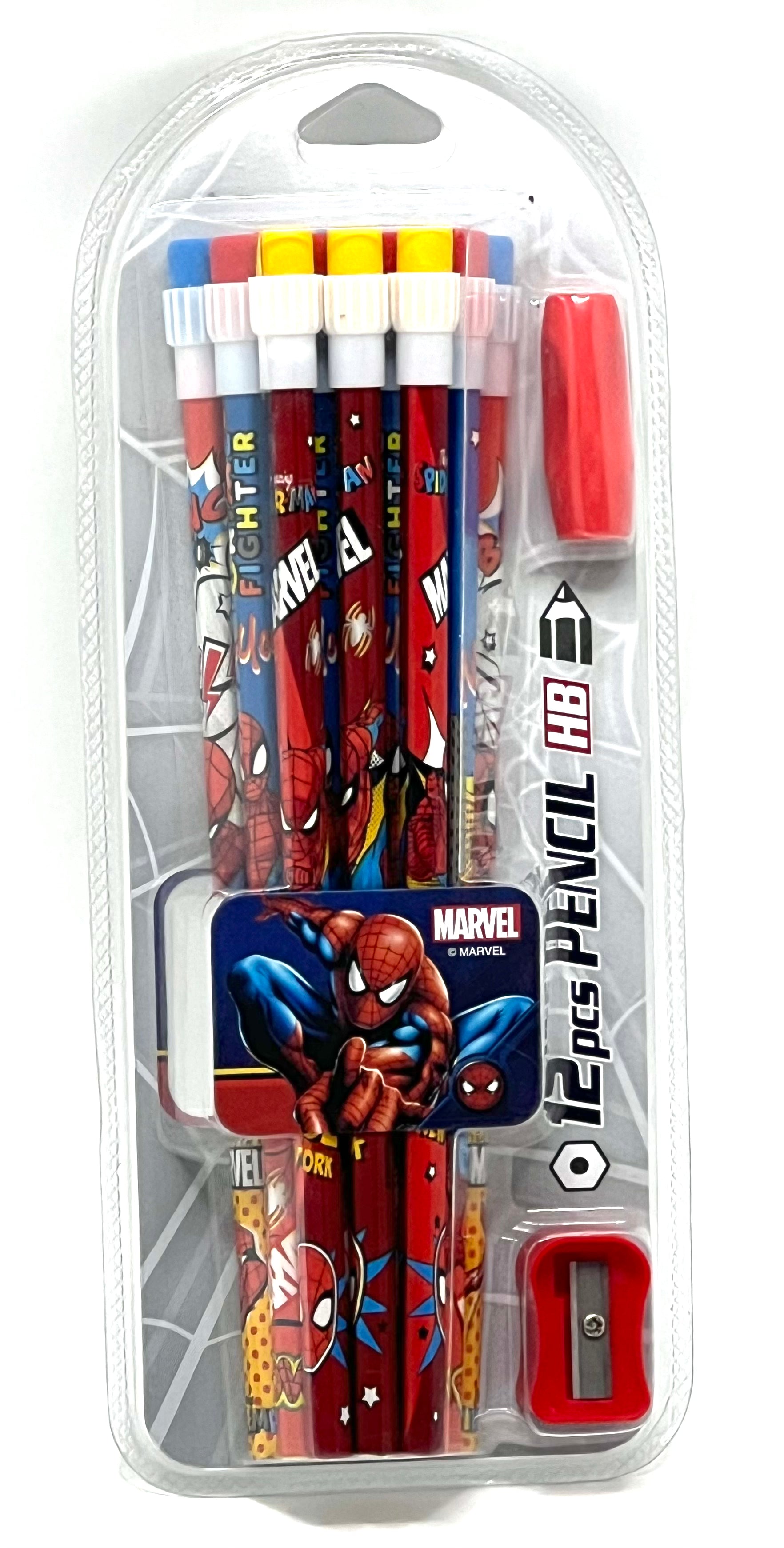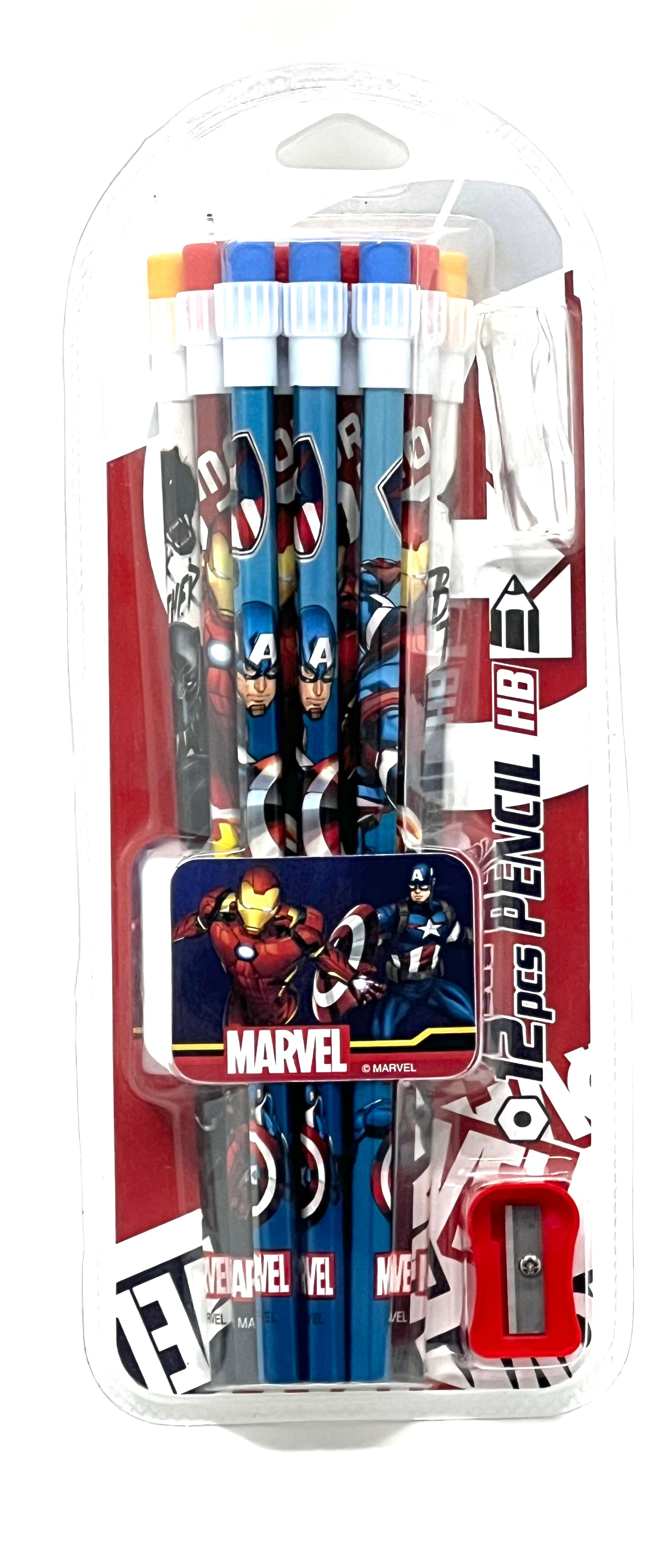 A fun and practical Marvel Avengers stationery combo featuring 24 pencils with character-themed top erasers, plus a sharpener and pencil grip—perfect for school and gifting.