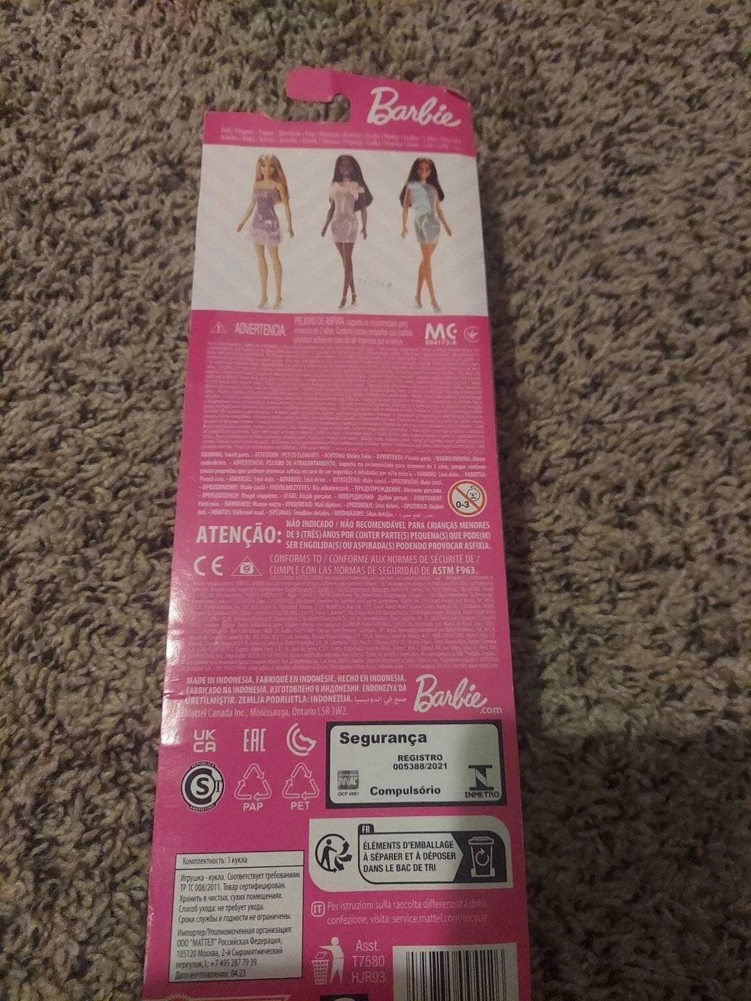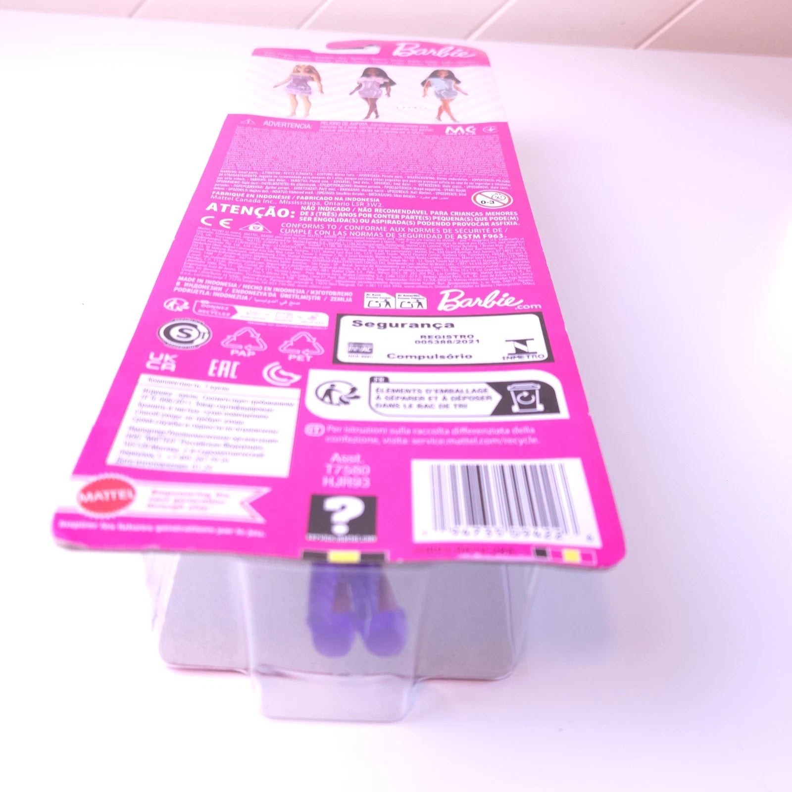 Barbie doll is ready for anything in a versatile outfit that is right on trend! She wears a removable pink dress with a one-shoulder silhouette and Barbie logos in black and white. Pink shoes complete the look for a signature barbiecore statement. Long, straight blonde hair can be styled for anything. Ready for all kinds of stories and styling, Barbie doll makes a great gift for kids ages 3 years and older.