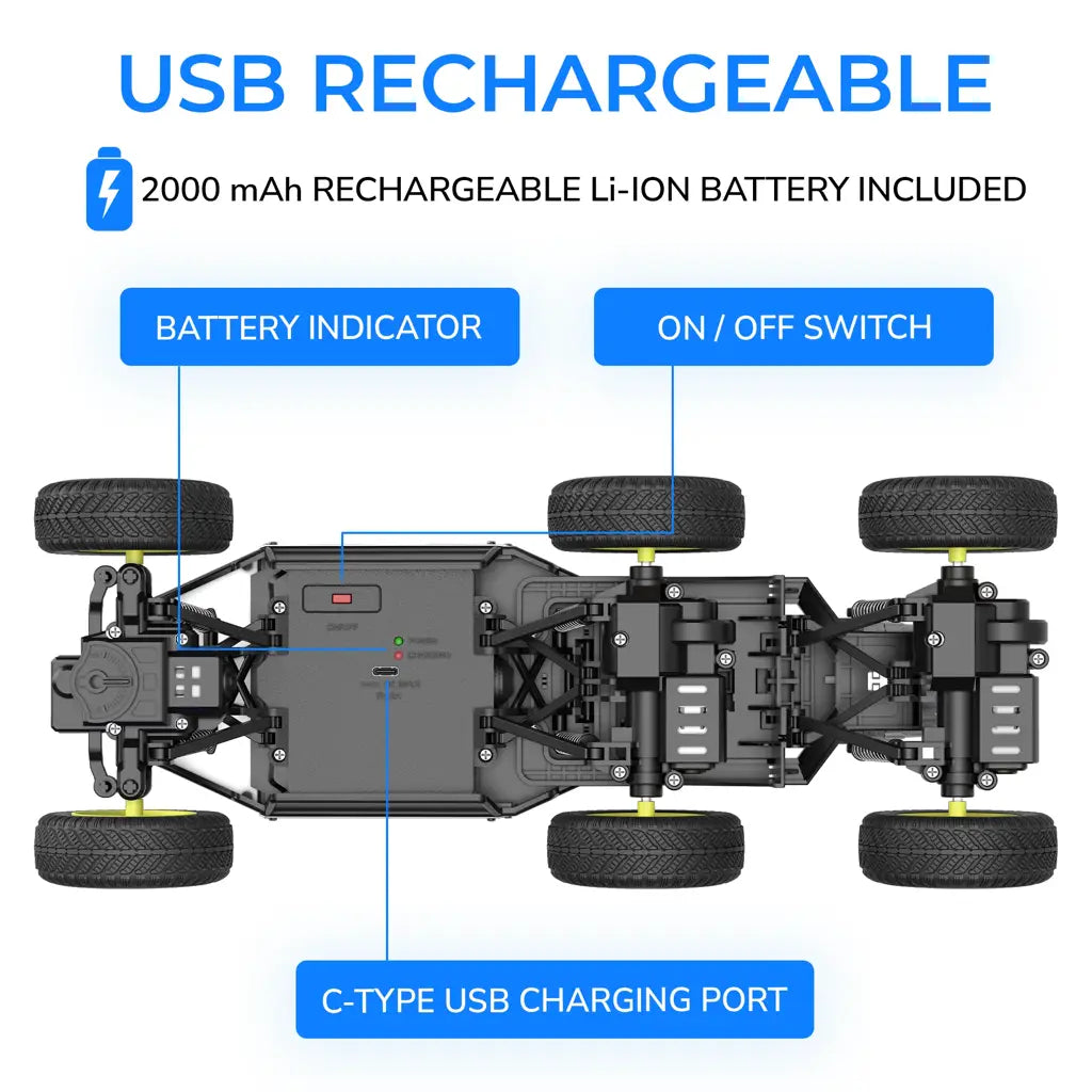 Fast & Convenient C-Type USB Charging: Get back to the action quickly with the C-Type USB charging port, ensuring your RC car is ready for the next round of excitement in no time.