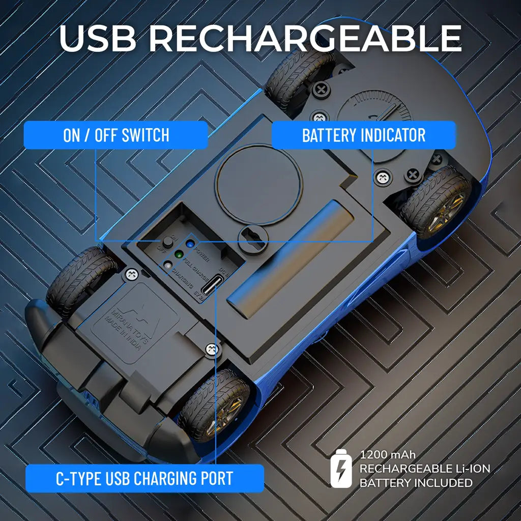 The Mirana Open Speedster Remote Controlled Racing Car delivers fast-paced fun with its sporty open-car design and responsive controls. Built for young racing fans, this RC car features smooth directional movement, including forward, reverse, left, and right turns.