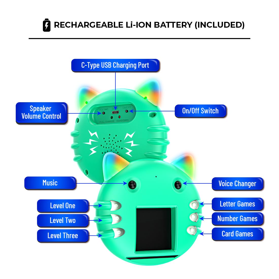 - USB Type-C Rechargeable: Powered by a USB Type-C rechargeable battery, this toy is environmentally friendly and hassle-free, ensuring long-lasting usage for endless hours of play and learning.