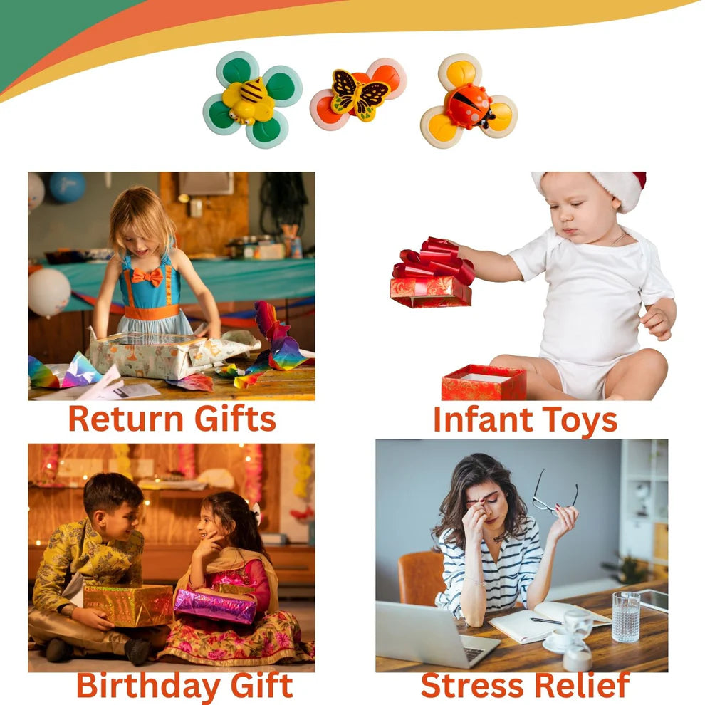 A fun and calming pack of 3 suction-based spinner toys designed for stress relief, sensory play, and endless spinning fun at home or on the go.