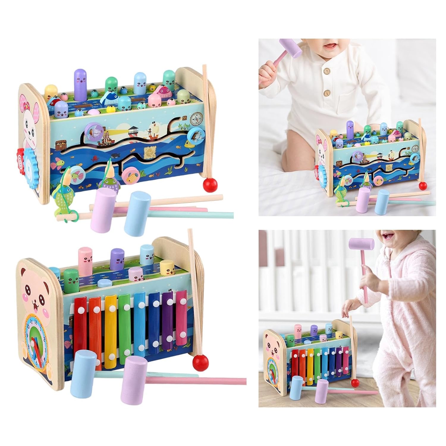 - 4 In 1: The Montessori Toy Is 4 In 1 Design, Xylophone, Pounding Toy, Clock, And Gears.