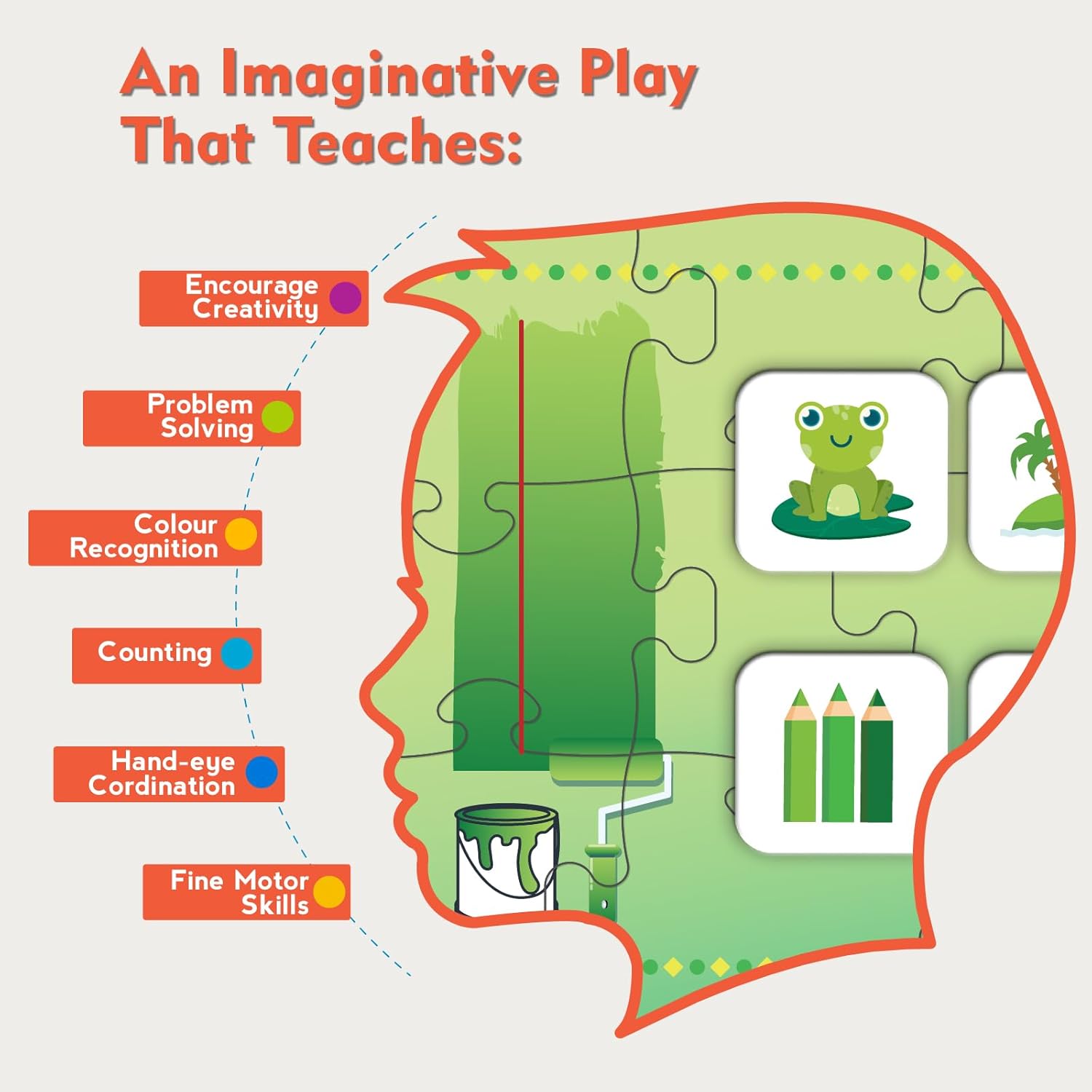 This interactive matching puzzle allows kids to create their own colorful game board by connecting puzzle pieces and placing tokens in blank spaces to match colors. Designed to enhance color recognition, problem-solving abilities, and fine motor skills, this hands-on activity makes learning fun! The durable, easy-to-handle pieces are perfect for little hands, ensuring hours of long-lasting enjoyment. Suitable for ages 4 and up, this puzzle offers an engaging experience for solo play or quality family time.