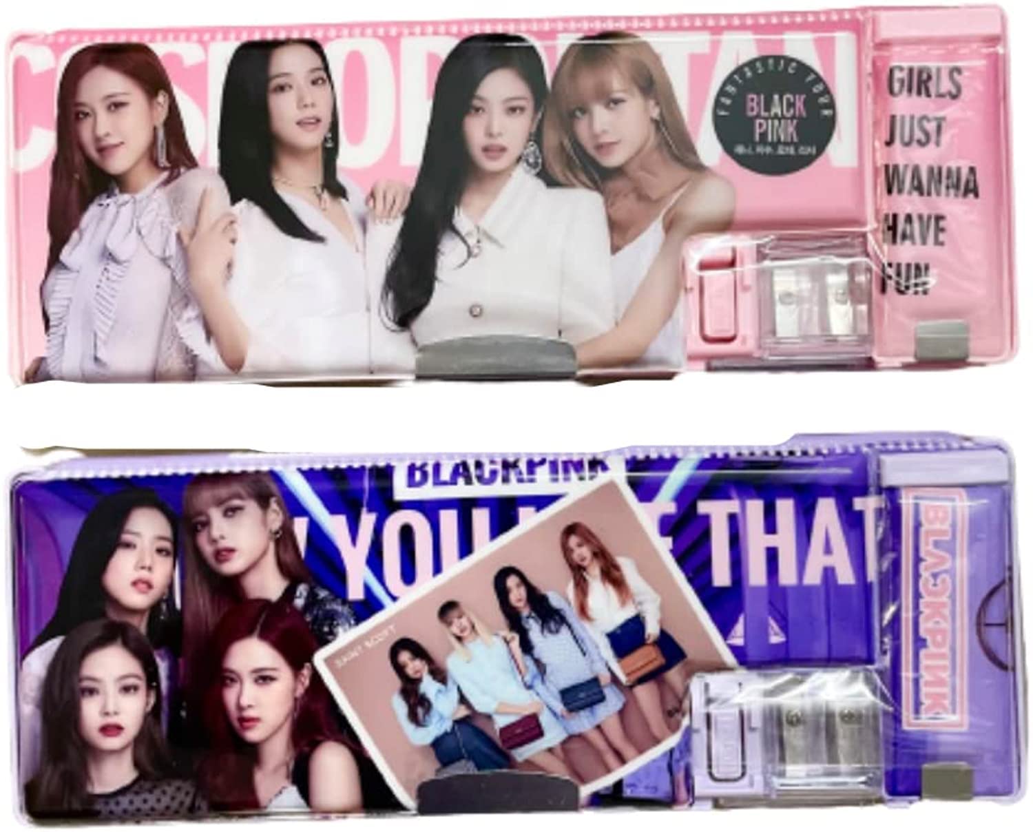 Prezzie Villa Pack of 1 Kpop Magnetic Pencil Box Geometry Two Side Open Pencil Holder for Kids (Black Pink)