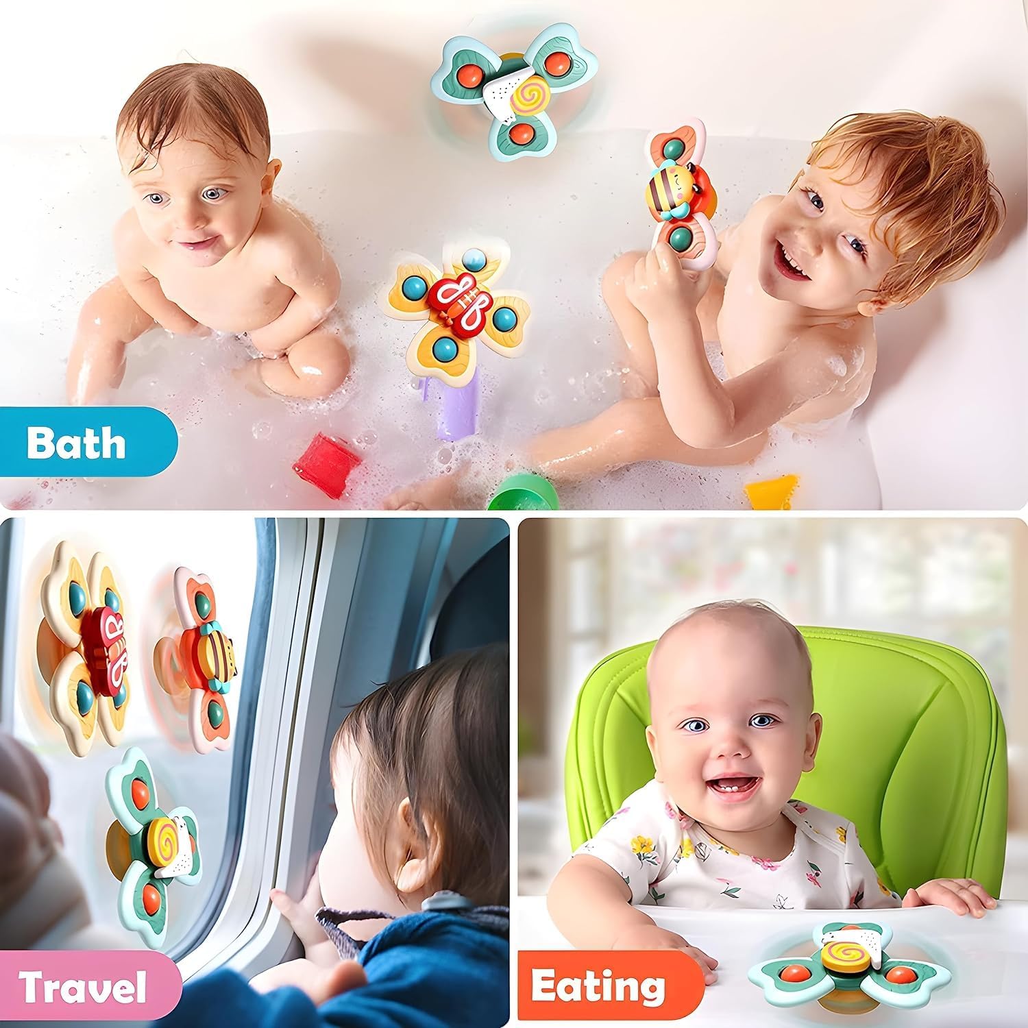 SIYA ENTERPRISE® Baby Bath Toys Spinner Toy for Baby Toddlers Boys Girls Waterproof Suction Cup Spinning Top Rotating Montessori Learning Toy Sticks to Smooth Surface (3 PCS)