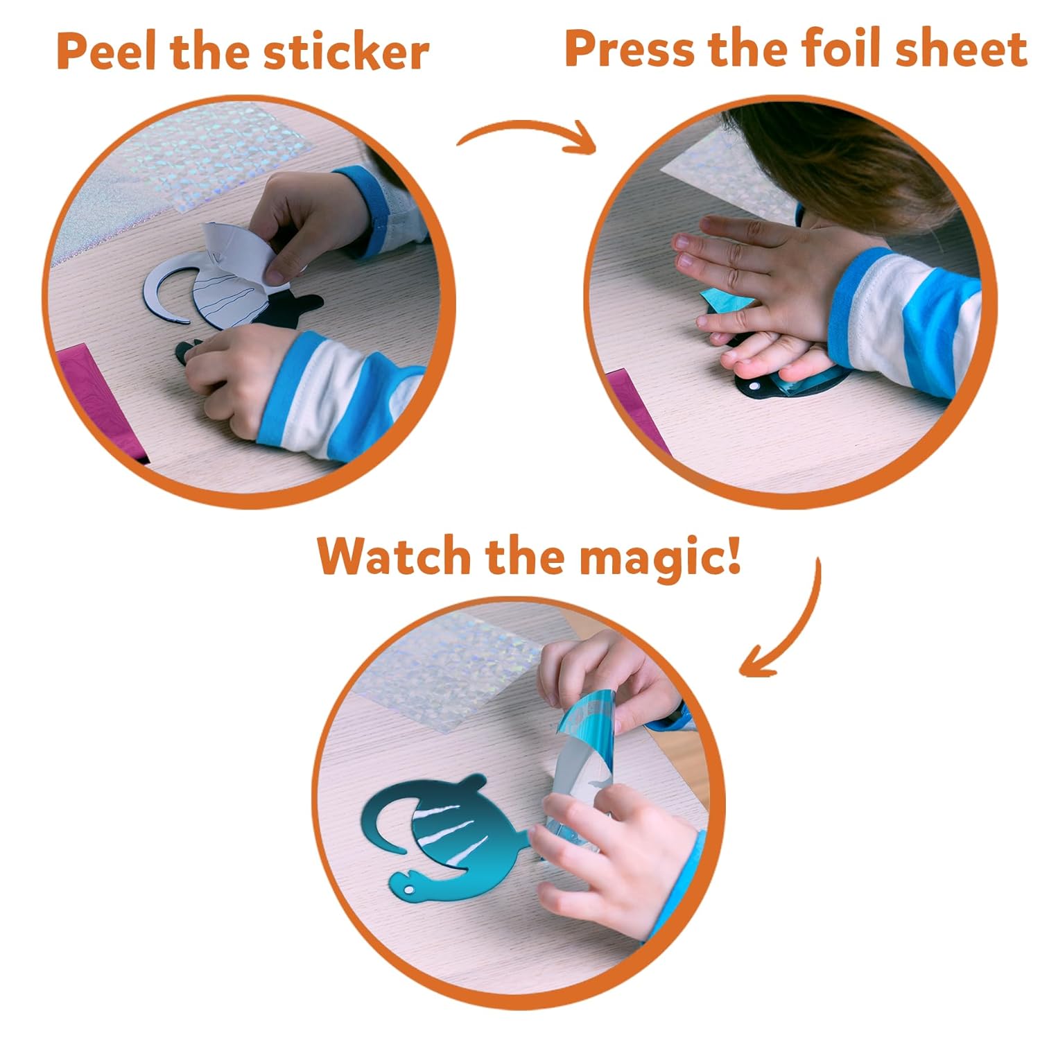 - FOIL ART & CRAFT ACTIVITY: Let your child's imagination soar with this magical, mess-free foil art and craft activity. They can create unique foil pictures featuring dinosaurs, volcanoes, fossils and more, sparking hours of creative play!