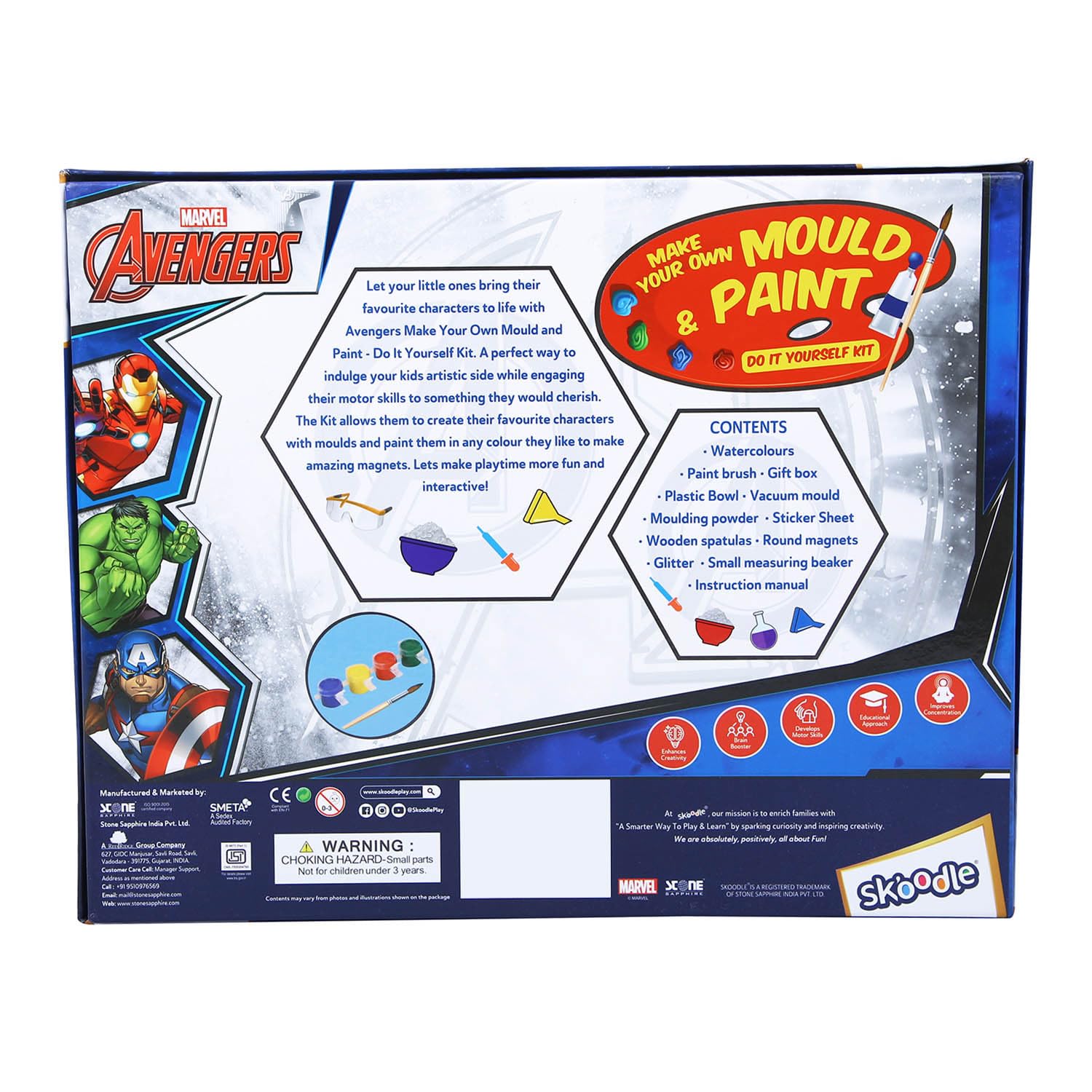 - Avengers-Themed Creative Fun: Dive into the Marvel Universe with the Skoodle Avengers Creative Kids Art and Craft Kit, a thrilling DIY toy that lets young artists create their own Avengers-themed fridge magnets.