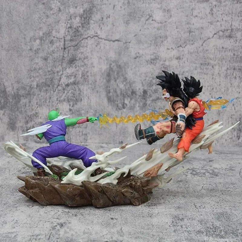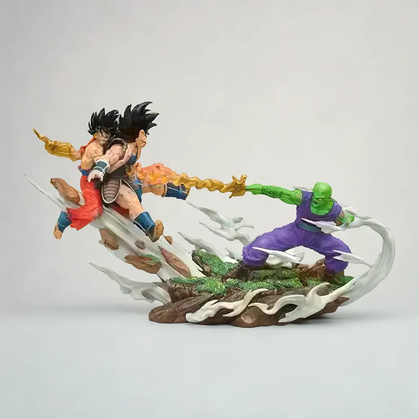 Relive the legendary first showdown with this Son Goku and Raditz vs Piccolo Action Figure from Dragon Ball Z! Capturing the intense moment from the Saiyan Saga, this dynamic diorama features all three warriors locked in battle, frozen in high-detail action — a must-have for any true DBZ collector.