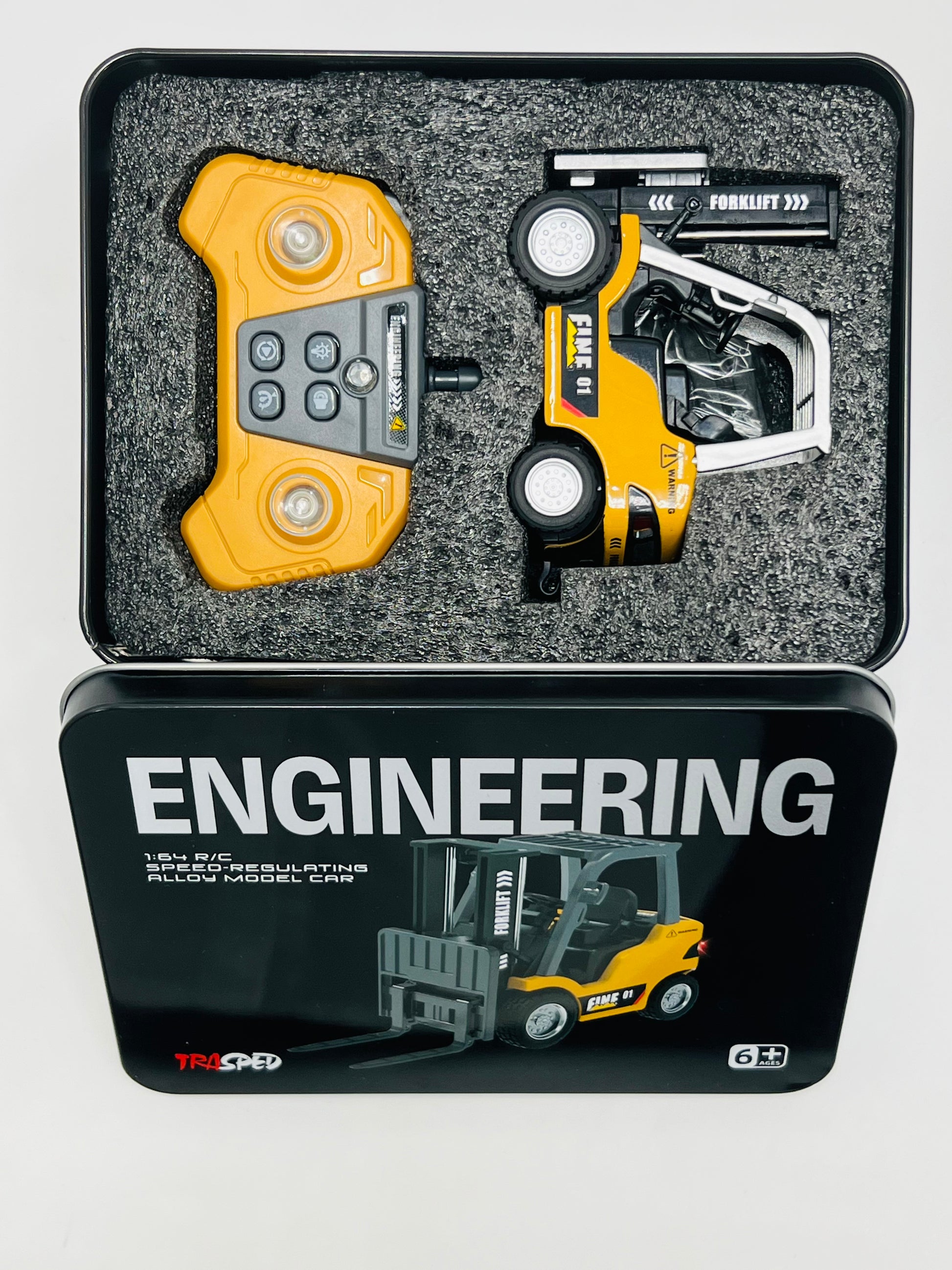 The Trasped 1:64 Remote Control Forklift delivers realistic industrial action in a compact scale model. Designed with authentic detailing and a functional forklift mechanism, kids can simulate warehouse loading and unloading tasks.