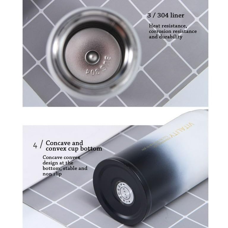 • Food-grade Material - This adults/kids insulated water bottle is made of 18/8 Stainless steel that is 100% non-toxic/Rust free/Odor free/slip-resistant. Perfectly vacuum sealed with double wall insulation,this water bottle can keep beverages cold or hot for a long time