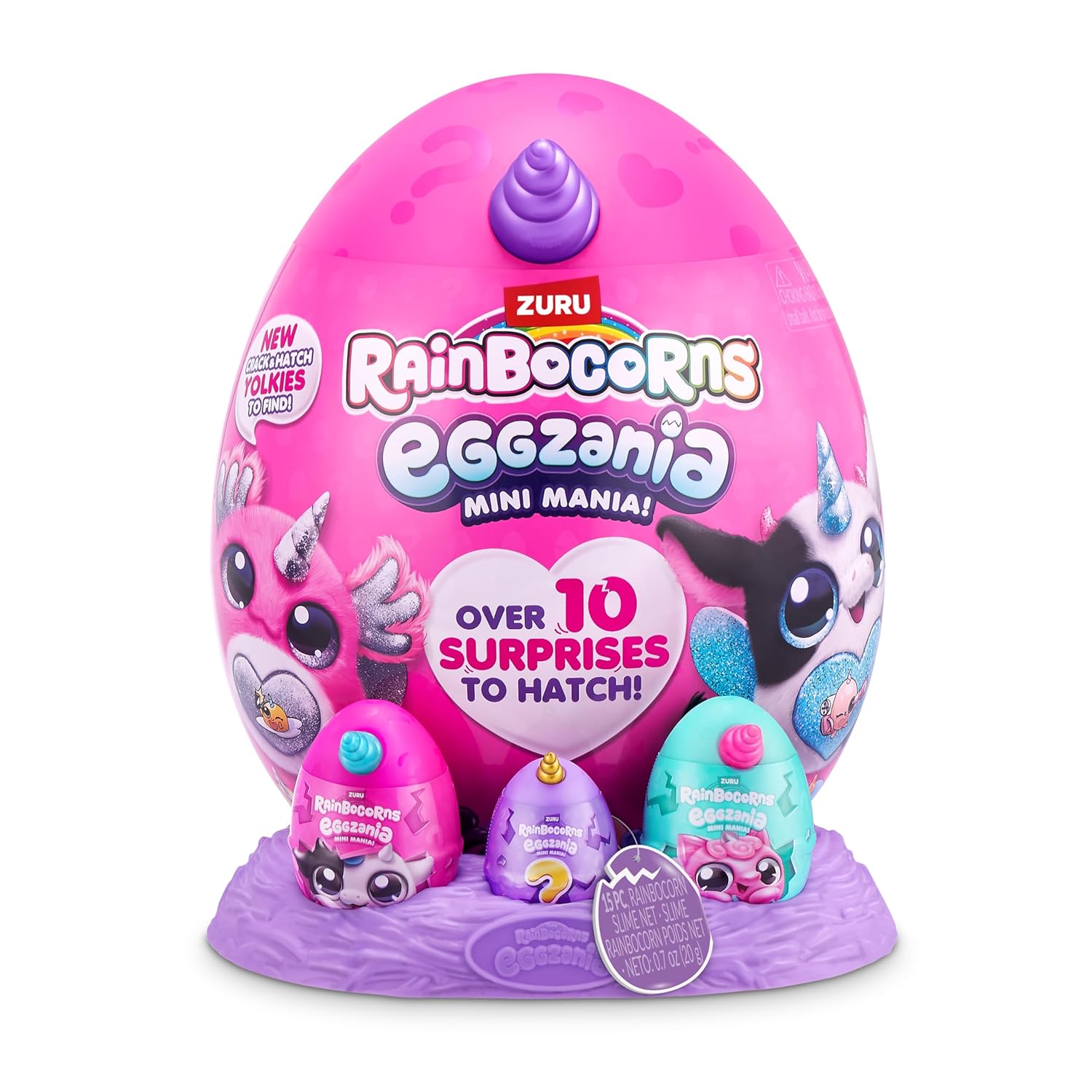 The ZURU Rainbocorns Eggzania Mini Mania takes surprise unboxing to the next level with a giant egg packed full of mini hatchable fun! Inside, kids will discover over 10 surprises, including adorable mini Rainbocorns eggs ready to crack open, collectible figures, slime, and fun accessories.